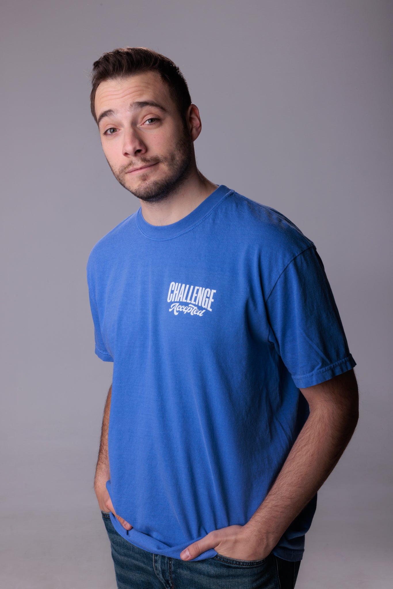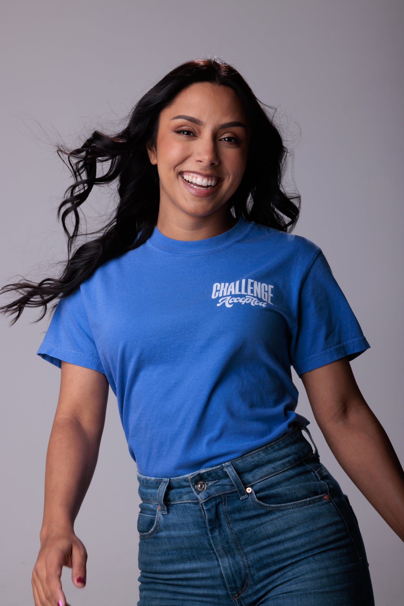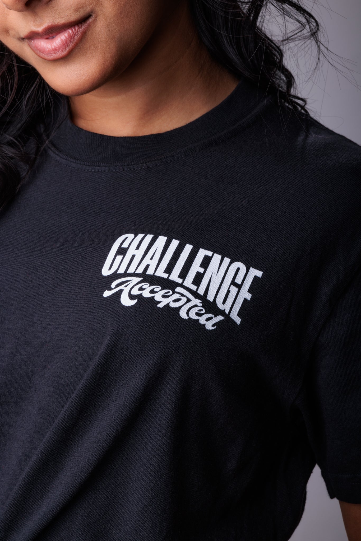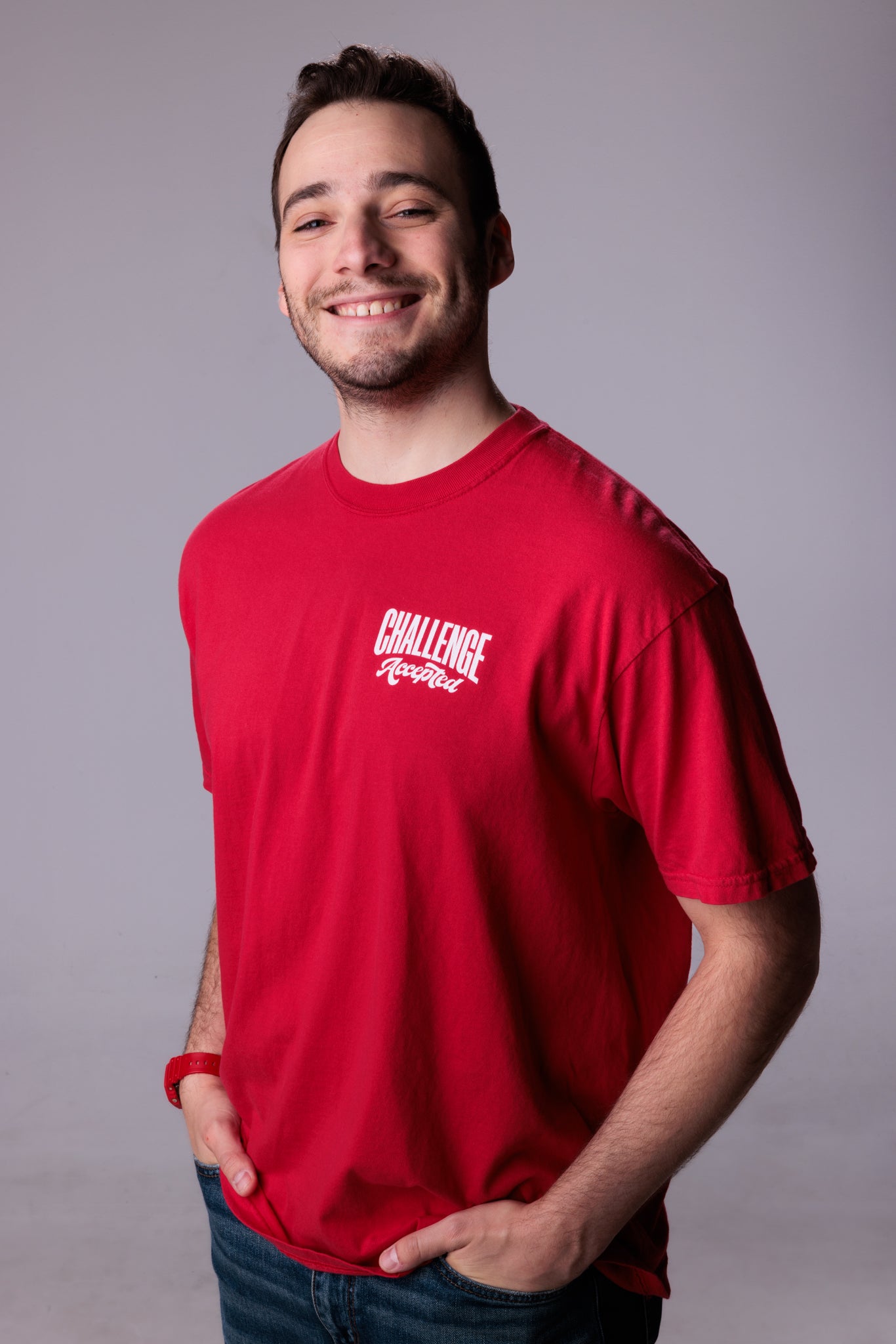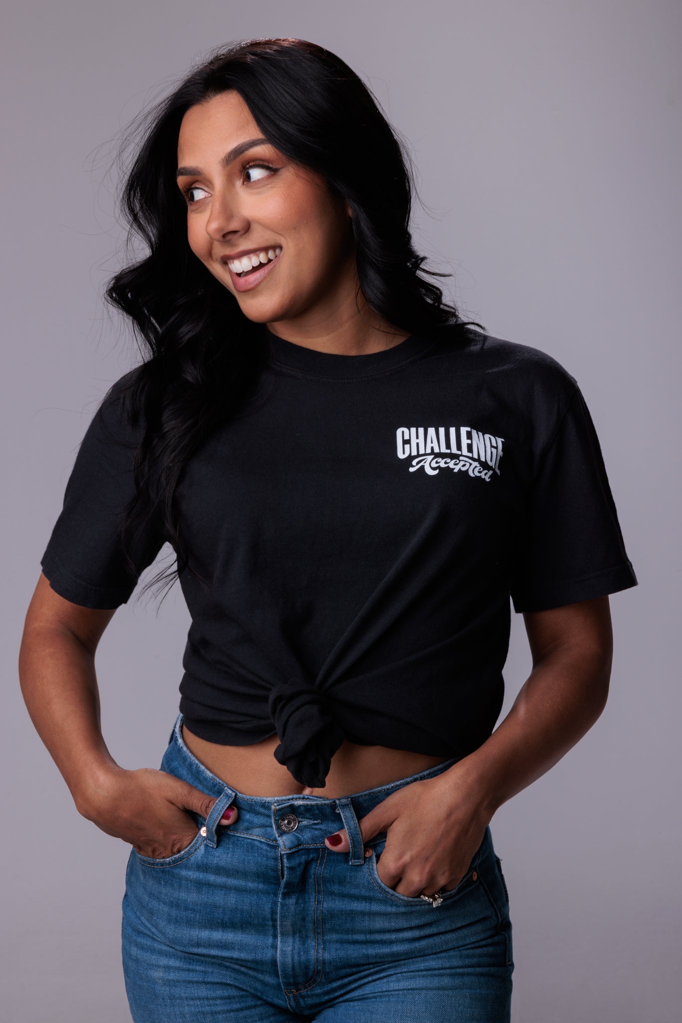 Choose from black, red, or blue base tee with our monochrome Challenge Accepted design printed in white. This is a unisex, garment-dyed heavyweight structured tee that’s also super soft and breathable. 100% ring-spun cotton.